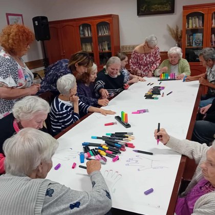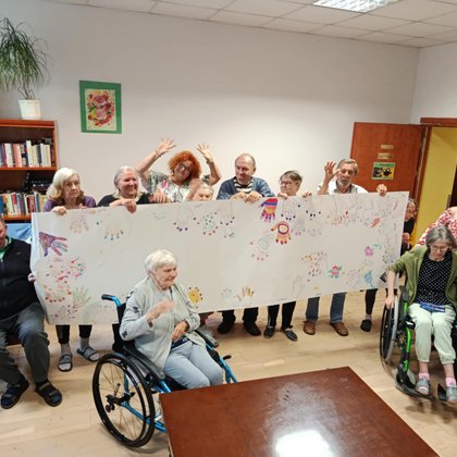 W środę nasi Mieszkańcy mogli wziąć udział w warsztatach plastycznych prowadzonych przez studentów UŁ w ramach projektu finansowanego ze środków UMŁ. To już drugie takie spotkanie - nasi Podopieczni wraz z pomocą przybyłych gości wykonywali pracę wielkoformatową składająca się z odrysowanych dłoni, które później każdy ozdabiał wzorkami. Kolejnym zadaniem Mieszkańców było narysowanie rzeczy, o których marzą na Święta Bożonarodzeniowe. Zajęcia zakończyli słodkim poczęstunkiem. Z niecierpliwością czekamy na kolejną wizytę, która odbędzie się już w październiku.